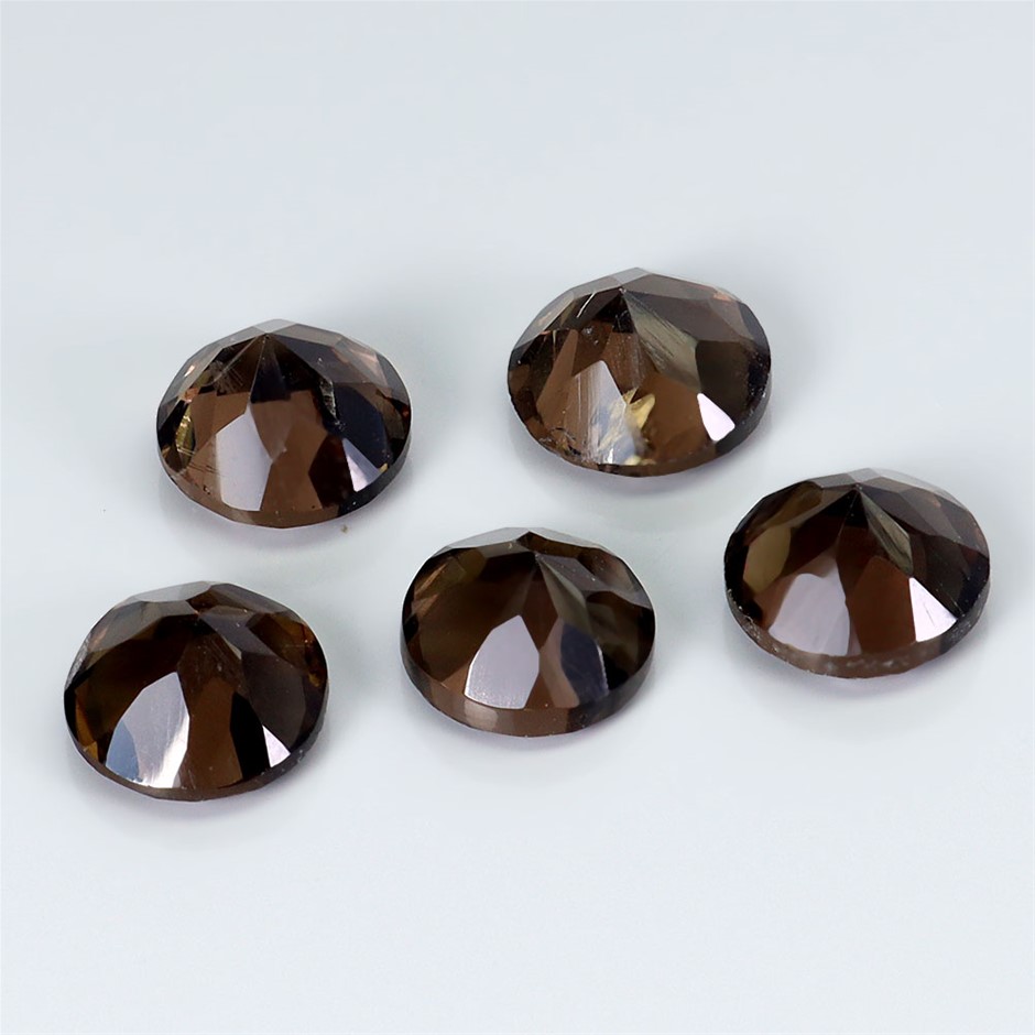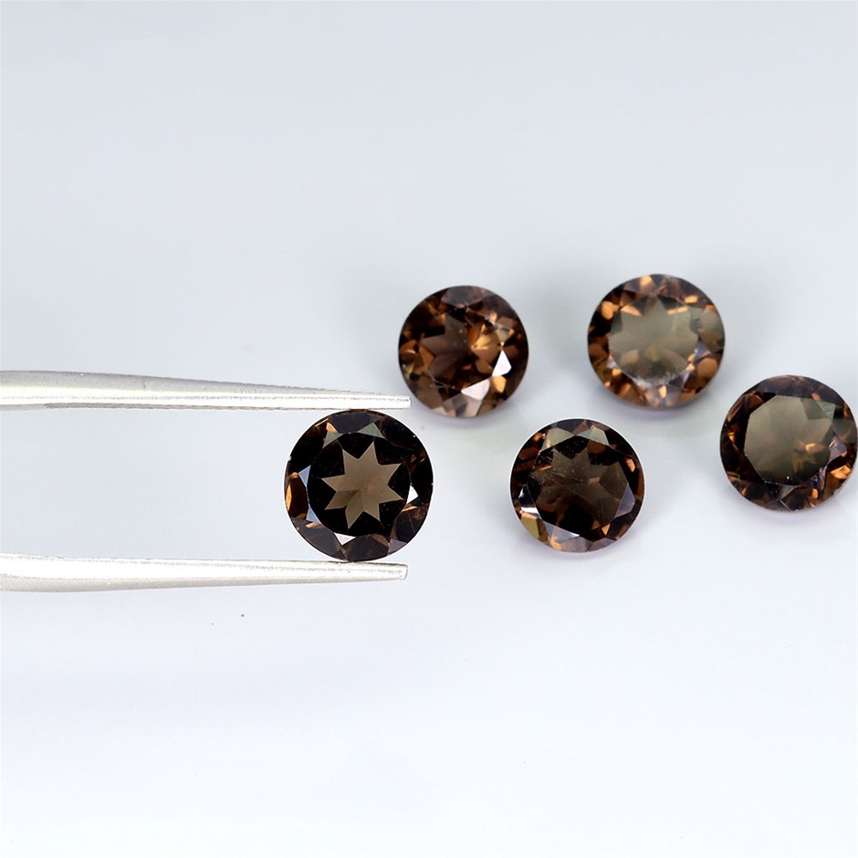 6.27ct Round Facet Cut Smoky Quartz Gemstones - 5Pcs