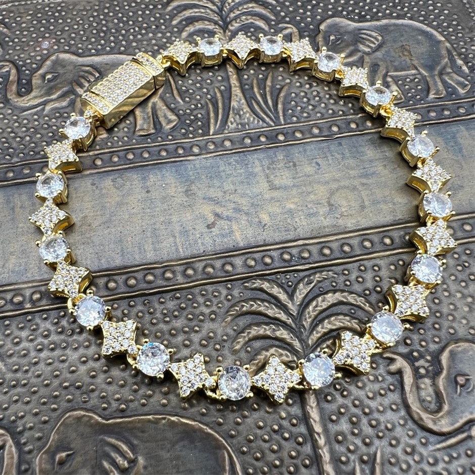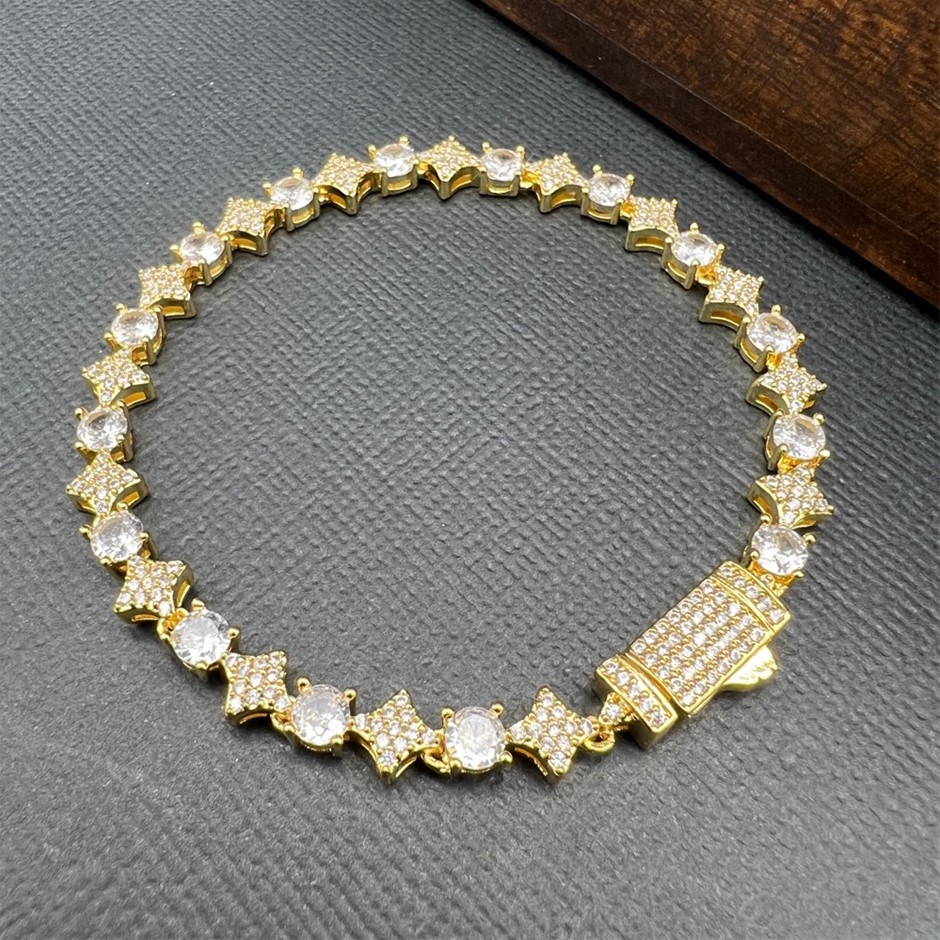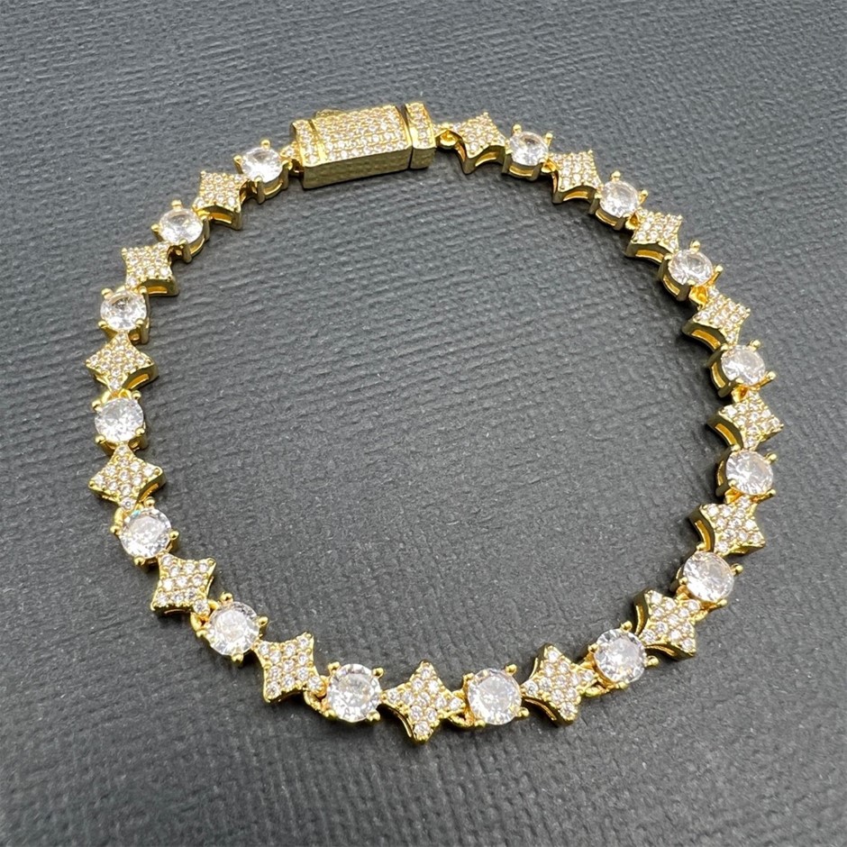 Opulent Galleria - 18K Gold-Filled 6mm Tennis Star Bracelet with Simulated Diamonds - 17.8cm