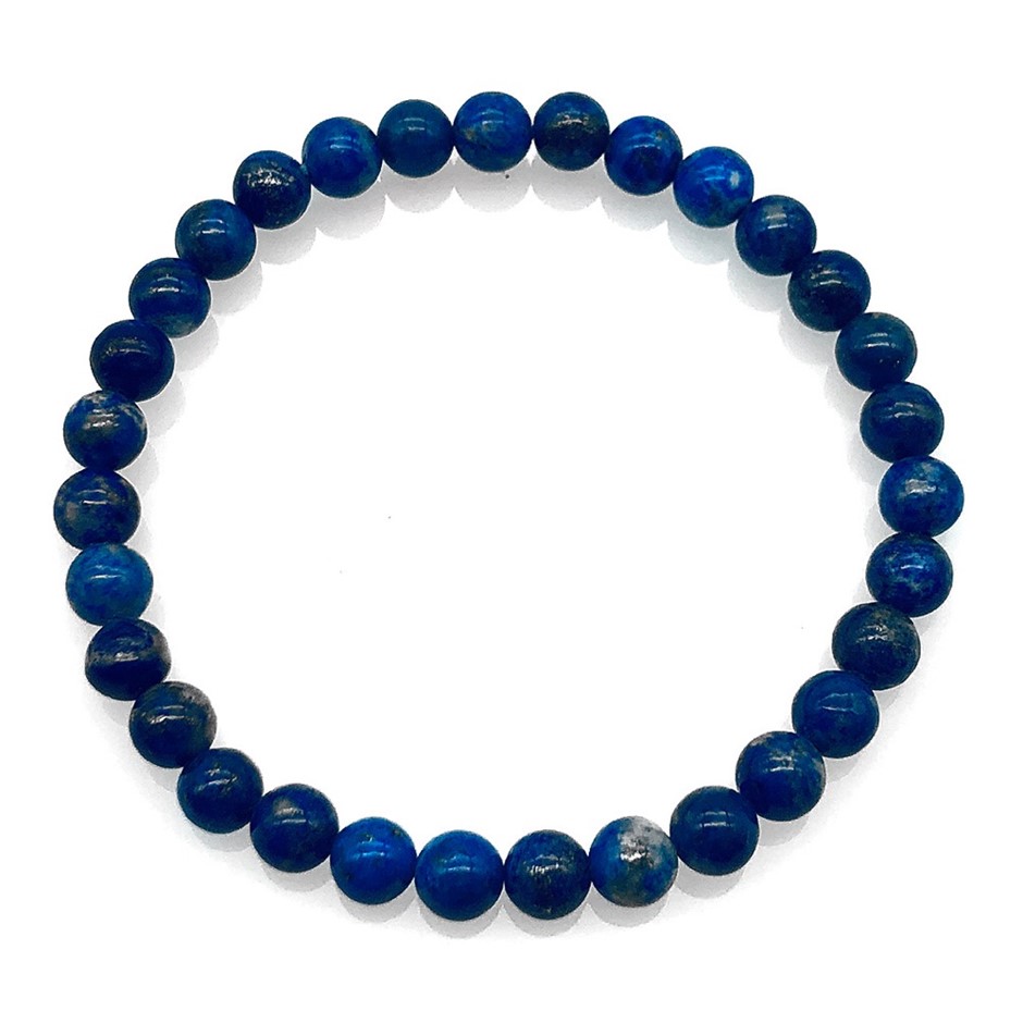 6mm Natural Blue with White Specks Lapis Lazuli Beaded Stretchy Bracelet