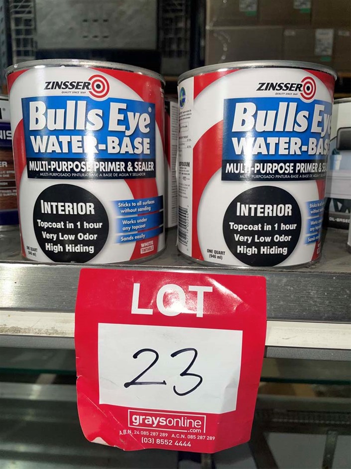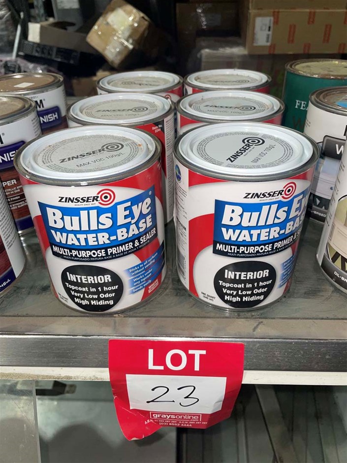 6 x 946ml Zinsser Bullseye White Primer & Sealer, (Ex-Retail stock, may show signs of shop-soil)