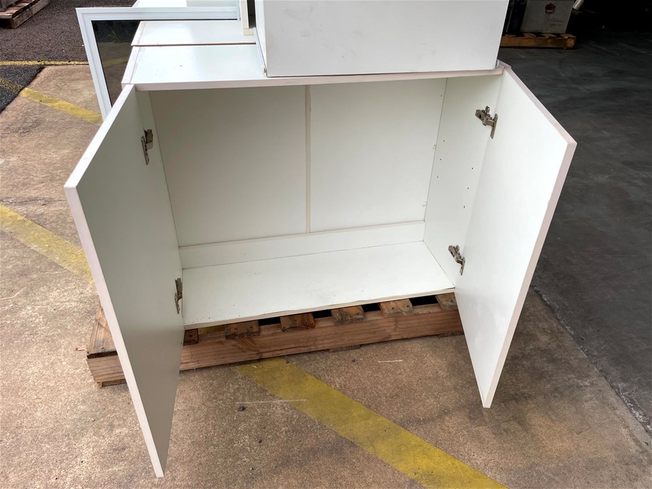 5x White Cabinets and Mirrored Glass