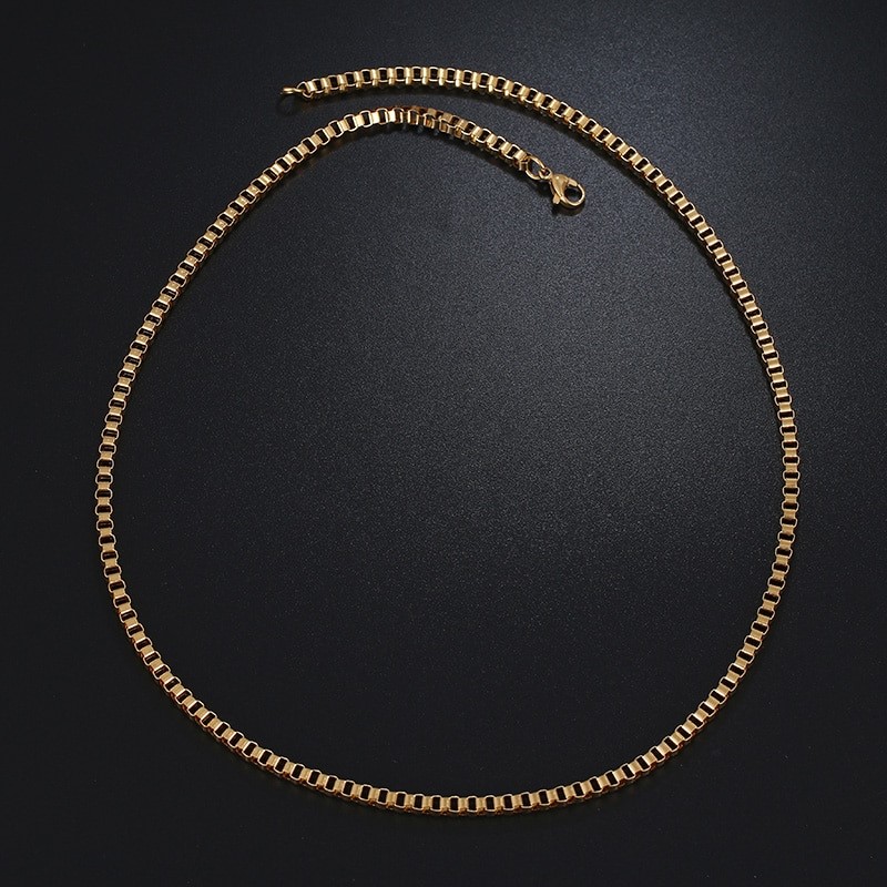 Classic 3mm Wide Stainless Steel Venetian Box Chain Necklace - 50cm (Yellow)