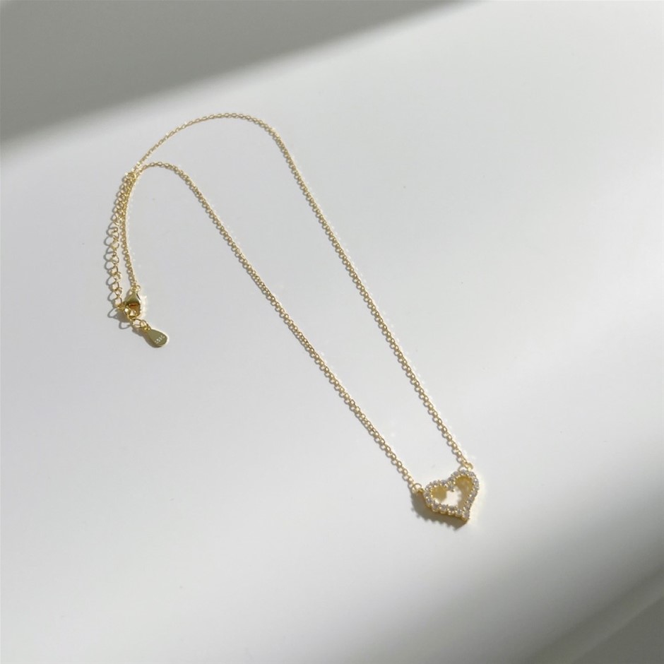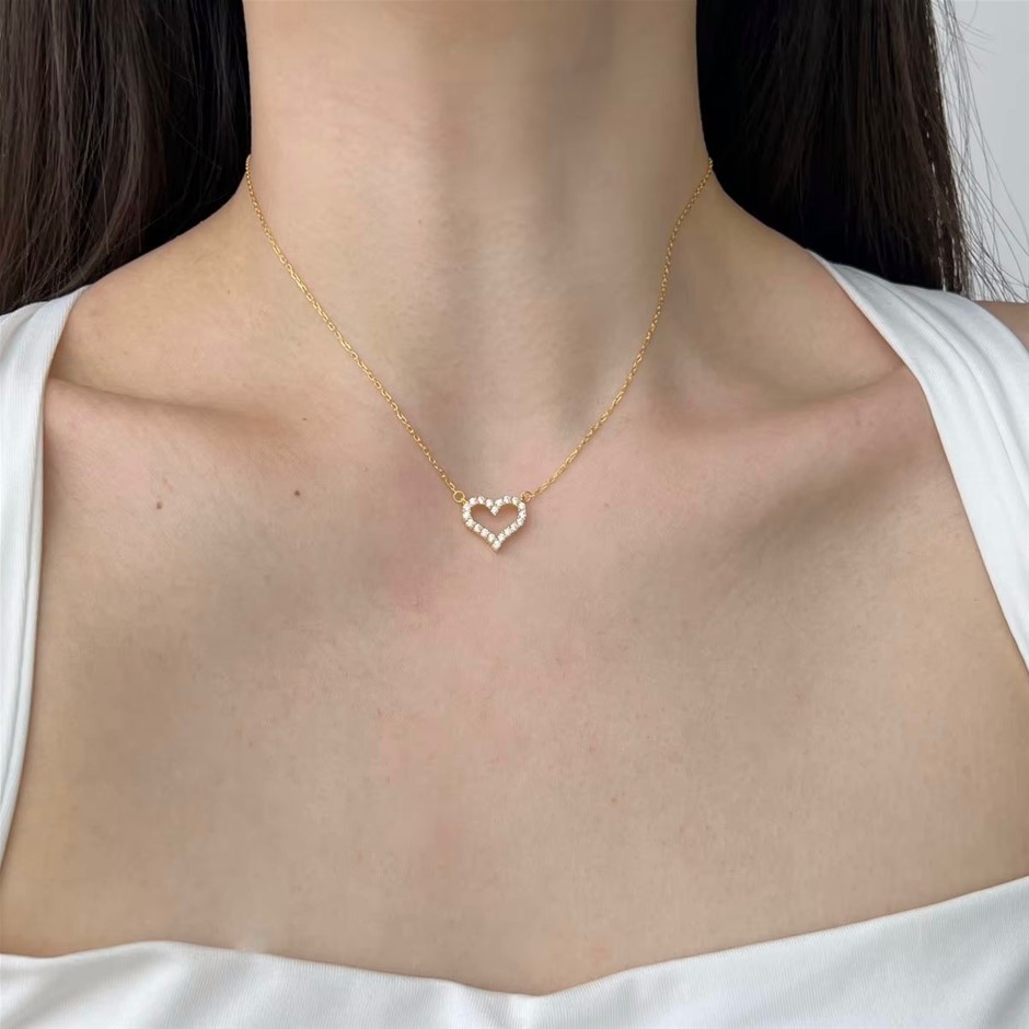 Simulated Diamonds Hollow Heart Pendant Necklace
