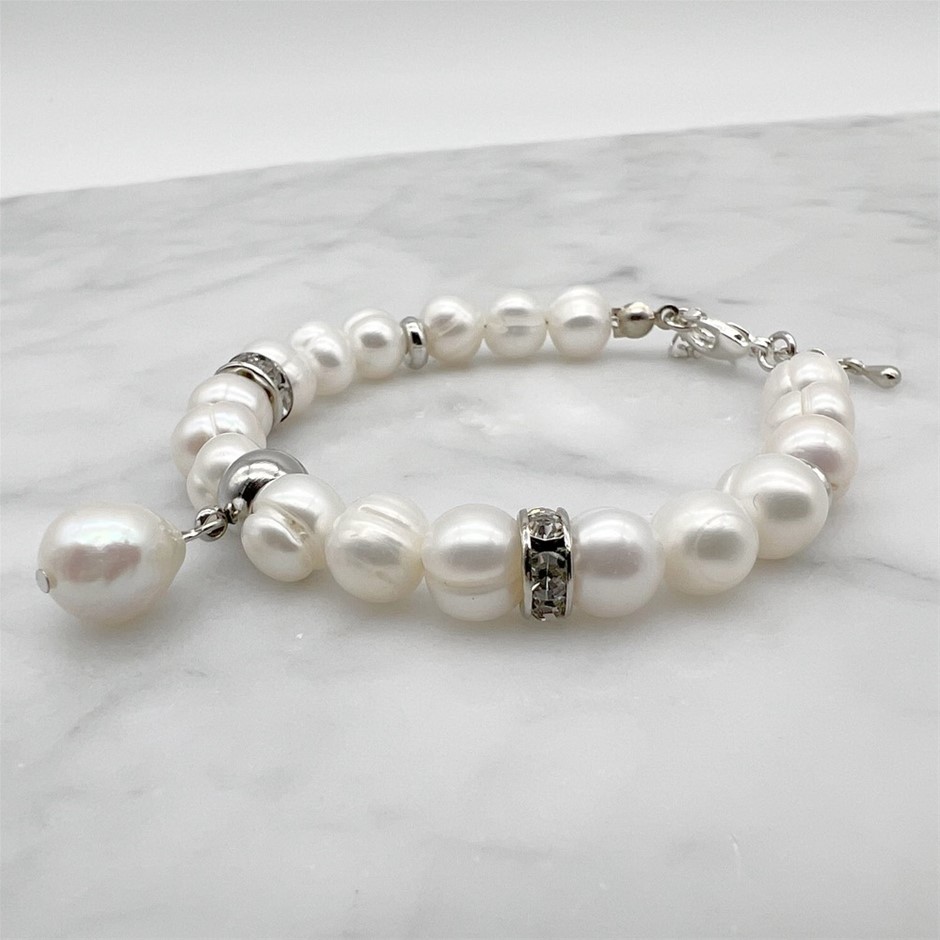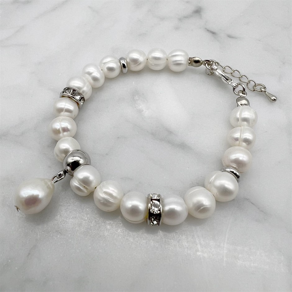 8-9mm Natural Potato Freshwater Pearl with Baroque Pearl Teardrop Charm Bracelet Product Specifications:
