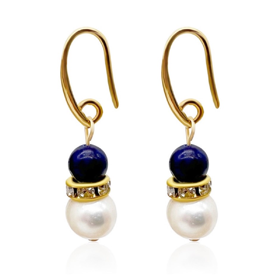 Natural 7-8mm Freshwater Pearl & Lapis Lazuli with Real 18k Gold Plated Necklace, Bracelet & Earring Set