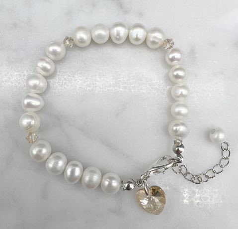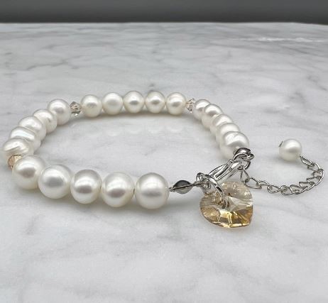 7-8mm Natural Potato & Baroque Freshwater Pearl with Swarovski® Heart Charm Bracelet.