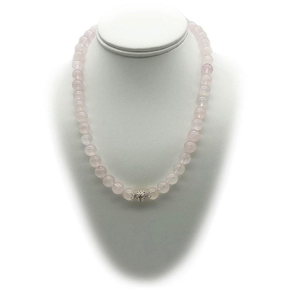 10mm Rose Quartz Persian Love Rhinestone Necklace, Bracelet & Earring Set.