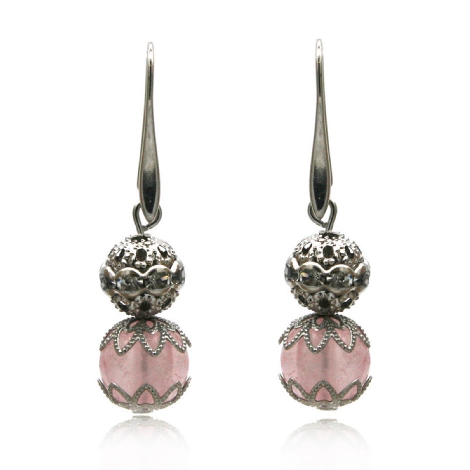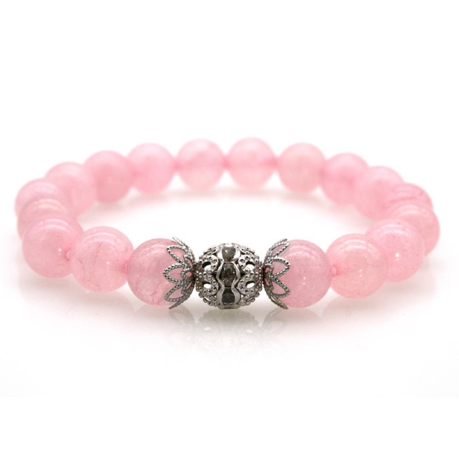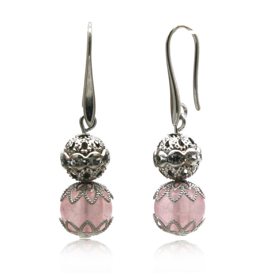 10mm Rose Quartz Persian Love Rhinestone Necklace, Bracelet & Earring Set.