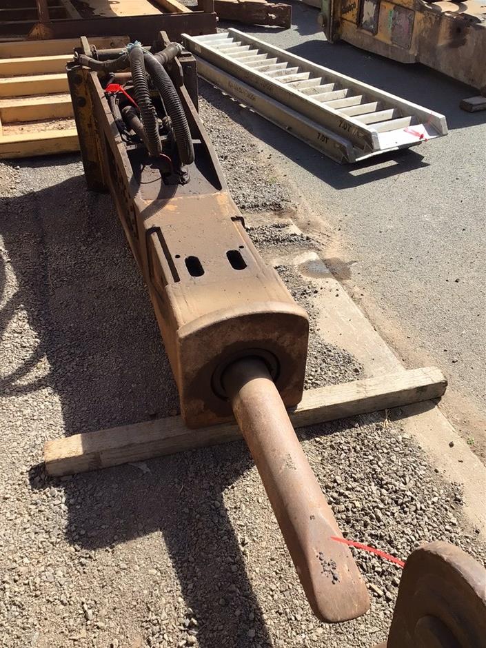 • Indeco HP 5000 Hydraulic Hammer . Dim 80. Mm (dia) pin . 520 mm between centres. 360 mm between ears.