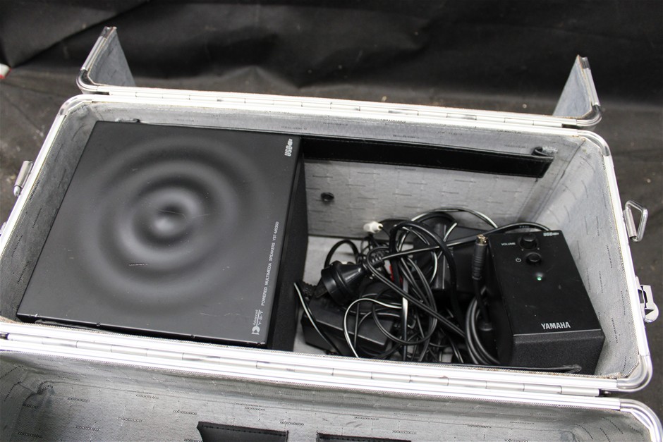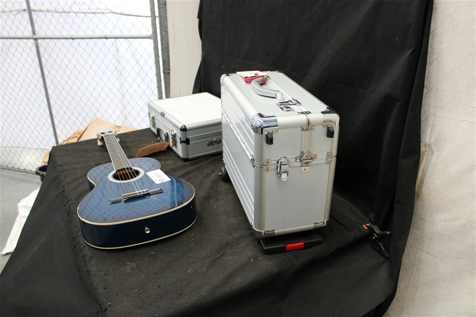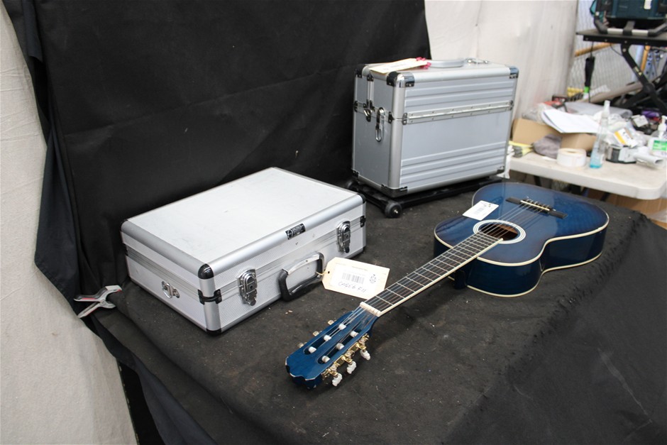 Guitar, Sony Projector and Multimedia Speakers in Case