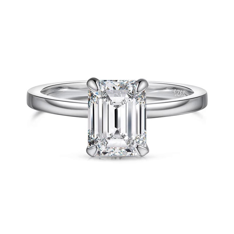 2.0ct Rectangle Cut GRA Certified Moissanite 925 Sterling Silver Ring - Size 6