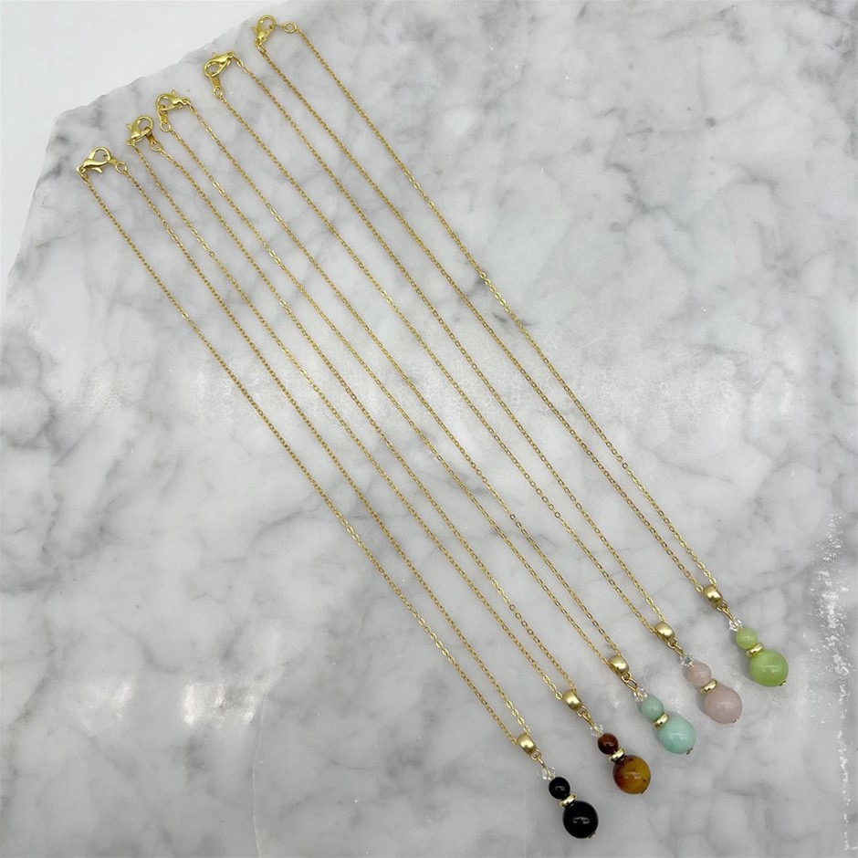 Assorted Genuine Gemstone & Swarovski® Austrian Crystal Gold Plated Pendant Necklaces - 5 Pcs