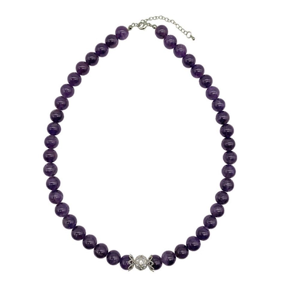10mm Natural Amethyst Persian Love Rhinestone Necklace, Bracelet & Earring Set.