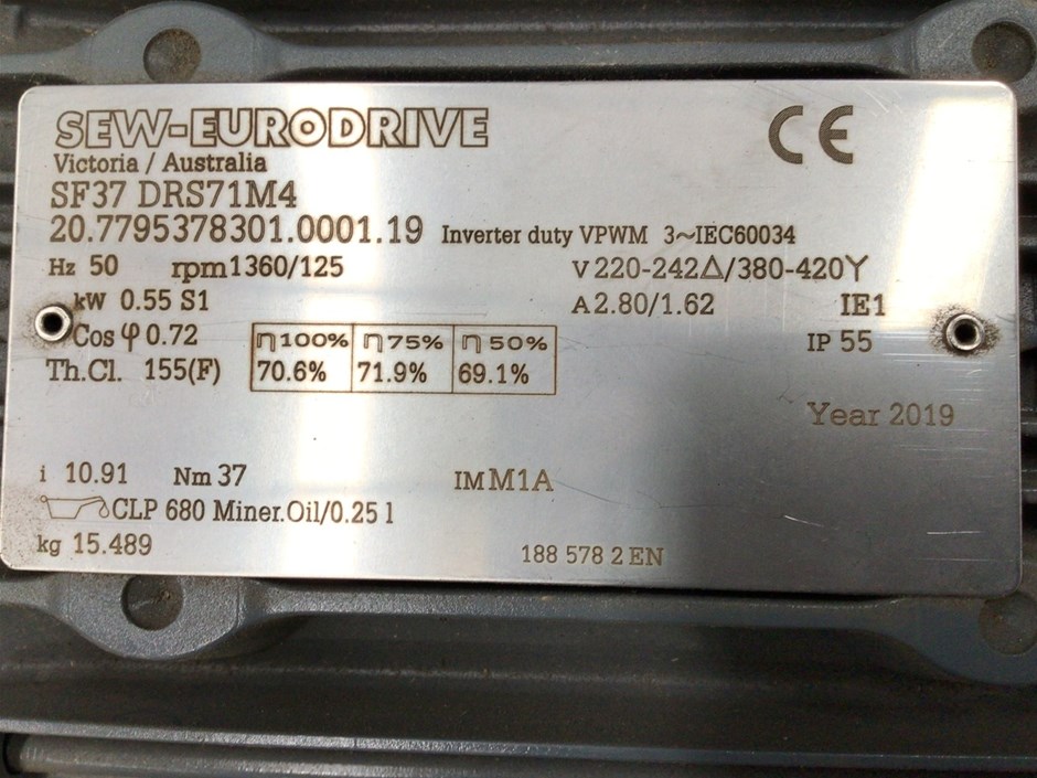 | Part of Sale | No Reserve SEW Drive Motors, Gearboxes, Servo Motors- Vic | ||||||||||