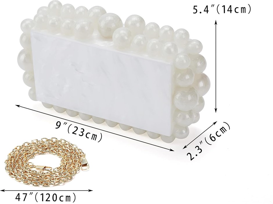 FECIALY Women`s Acrylic Marble Clutch Purse Pearl Evening Bag Beads Square Cross Body Bag for Wedding Party, White Buyers Note - Discount Freight Rates Apply to All Regional Areas(Code: B0C1MHX6HC) (334134-25)
