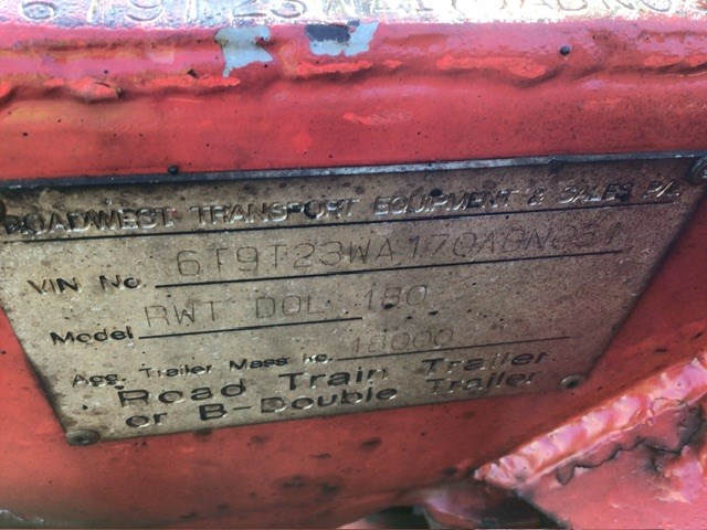 2007 Road West Transport RWT DOL 180 Dolly