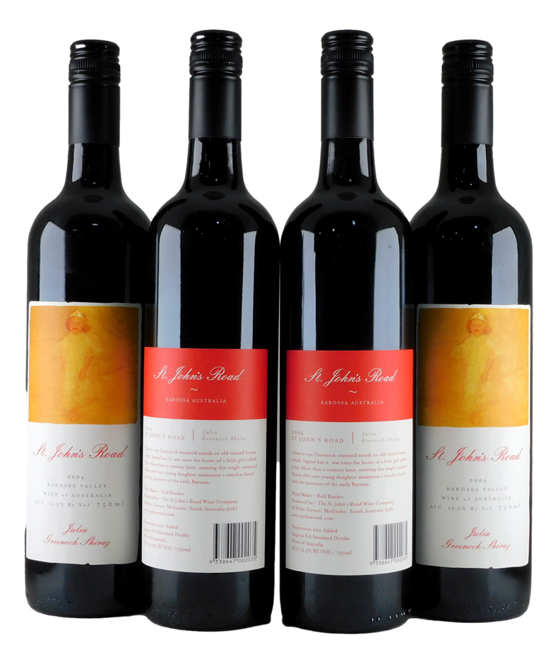 St John`s Road Julia Greenock Shiraz 2004 (4x 750mL). (319752-14)