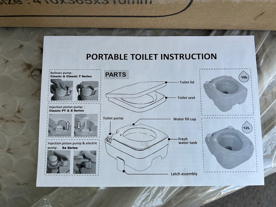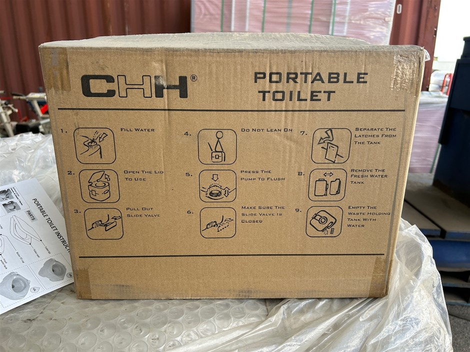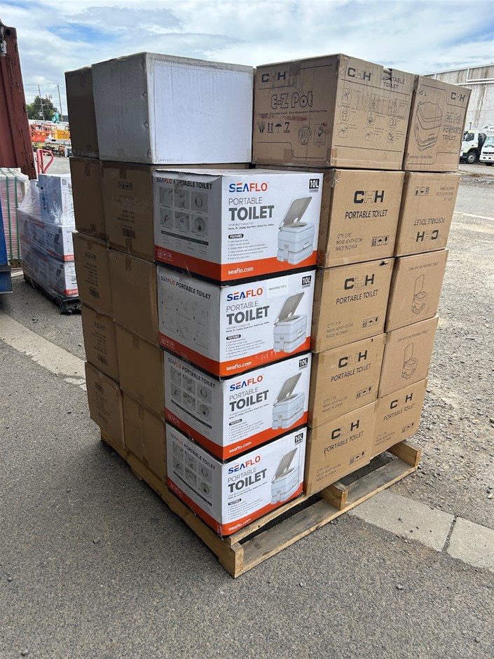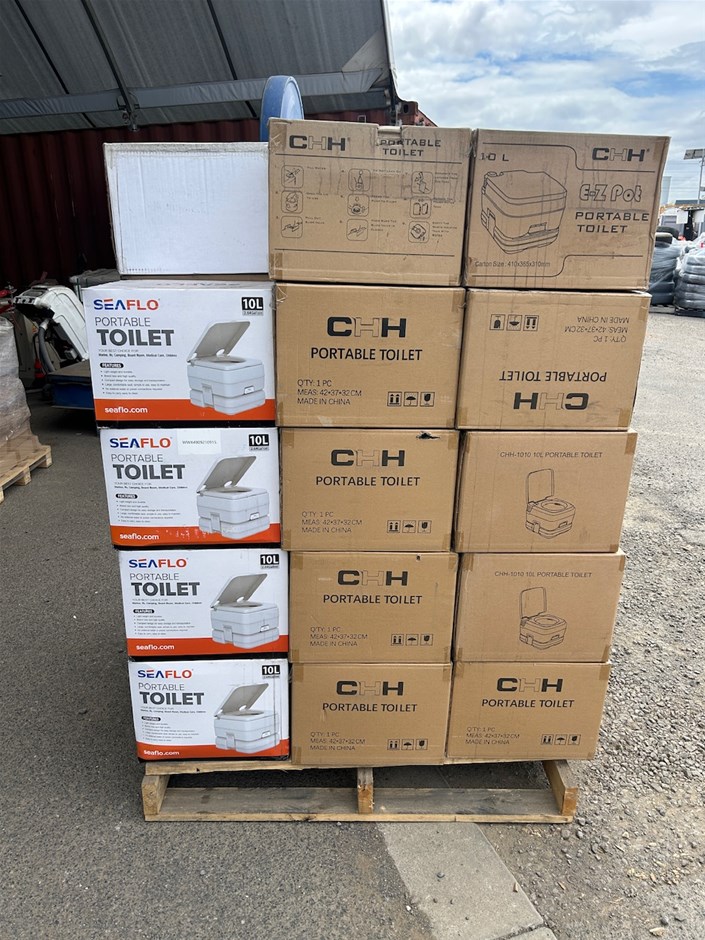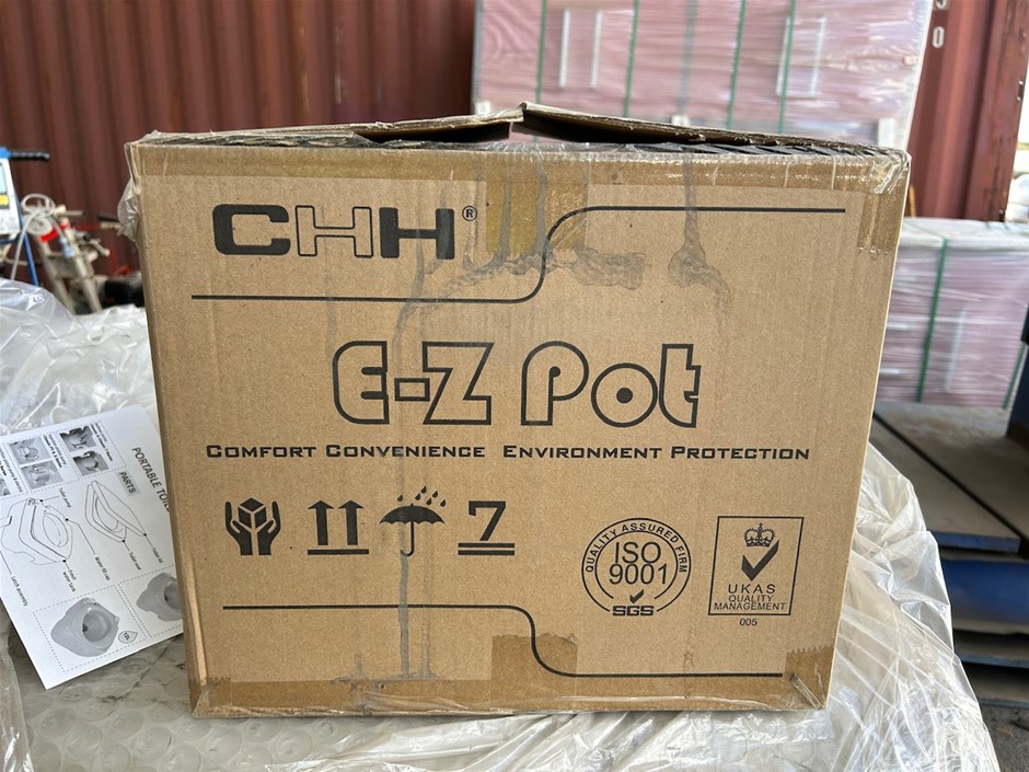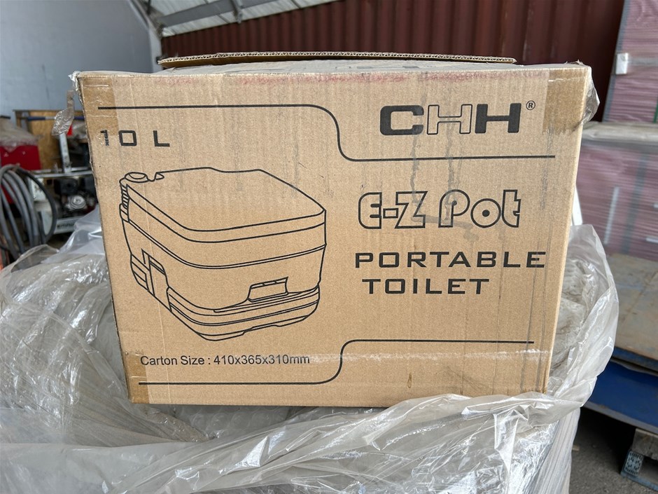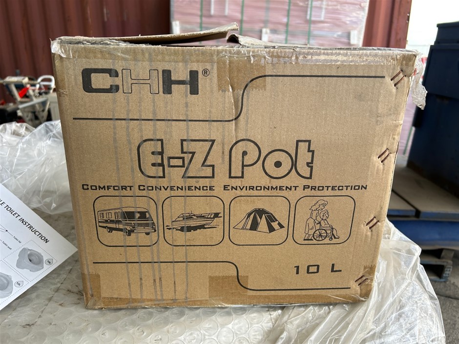 • 45 x Unused CHH EZ-Pot Portable Toilets. 10LT. 33 x CHH Ez-Pot Portable Toilets. 5 x Seaflo Portable Toilets 10LT. 7 x unmarked boxes of Portable Toilets.