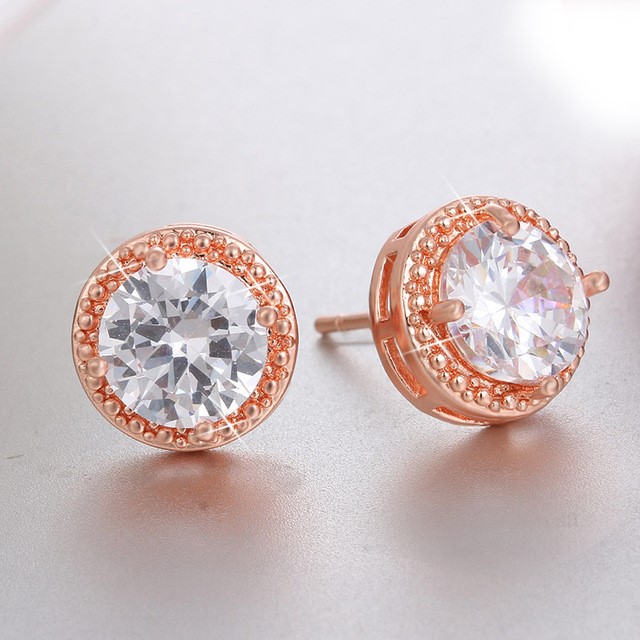 Designer Round Simulated Diamond Bridal Earrings in Rose
