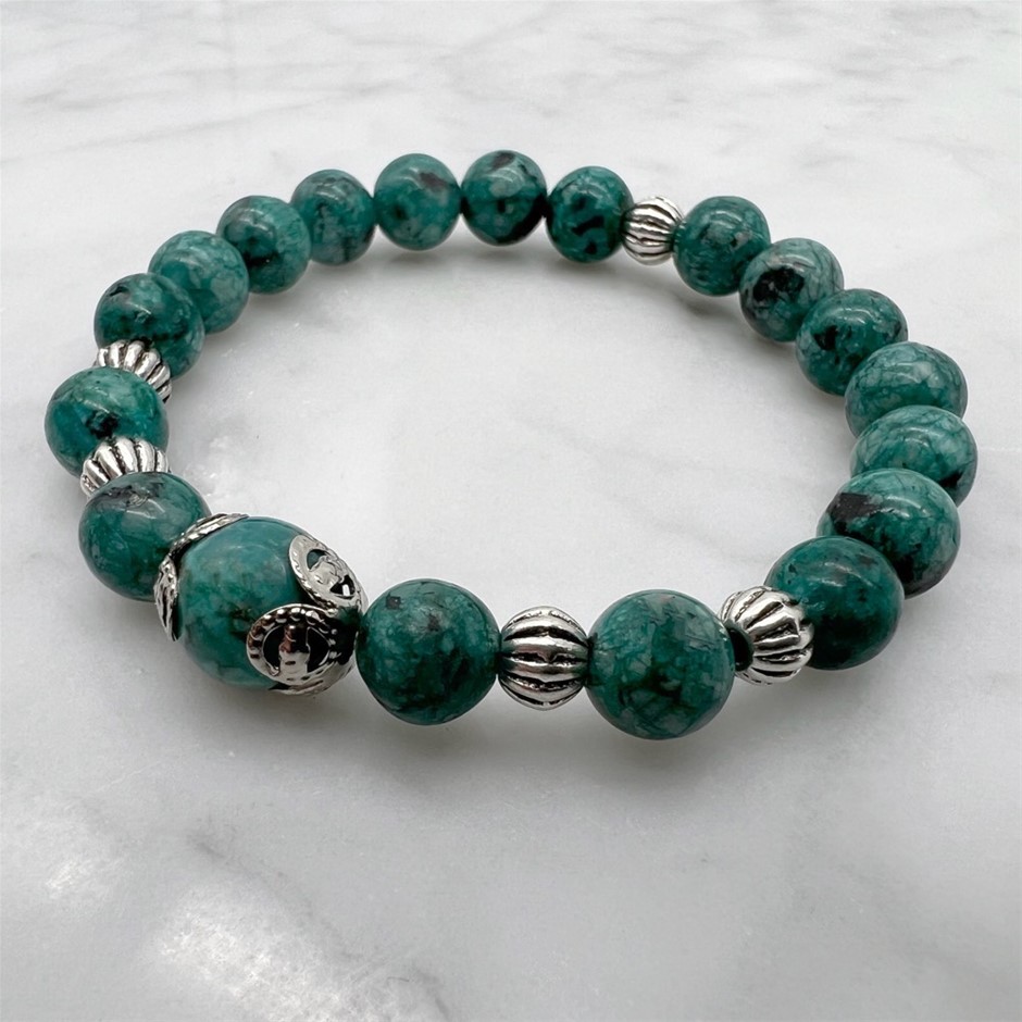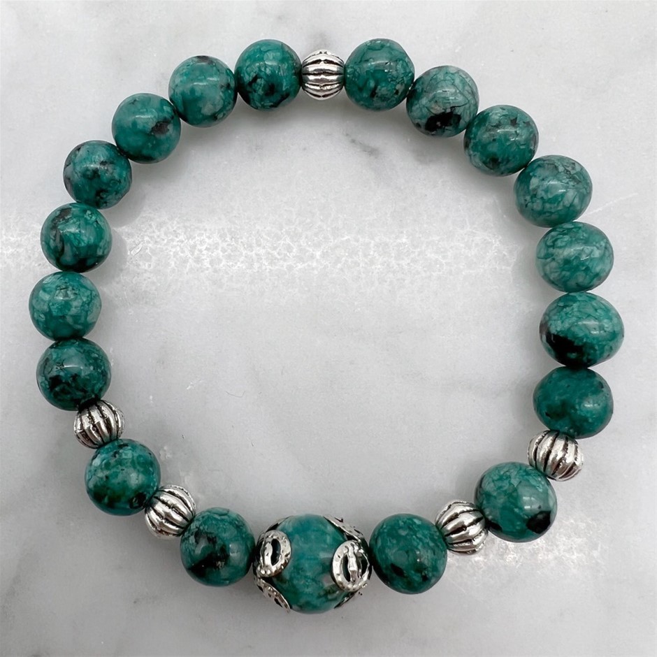 Natural African Jasper `Turquoise` Majestic Beaded Stretchy Bracelet