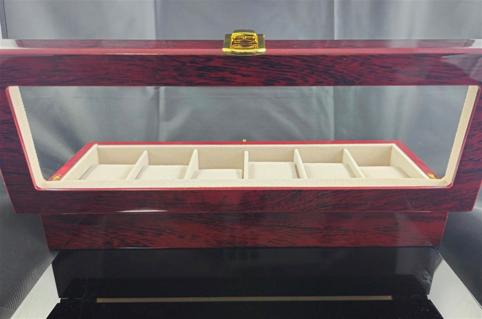 Luxury Wooden Watch Display Case – 6 Slot with Glass Lid