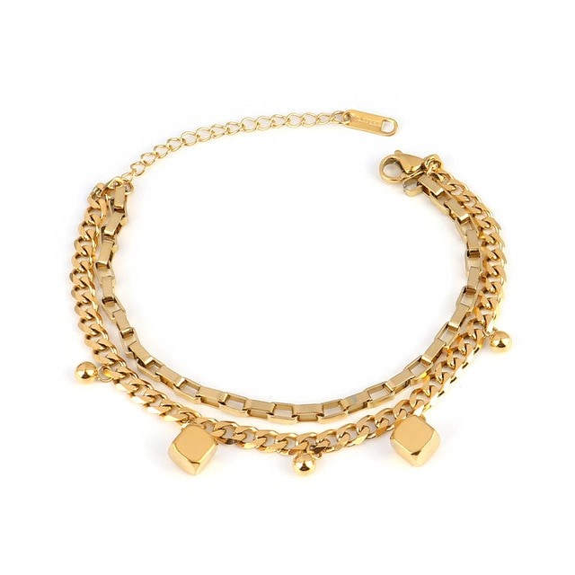 Vintage Stainless Steel Double Layer Charm Bracelet - Yellow