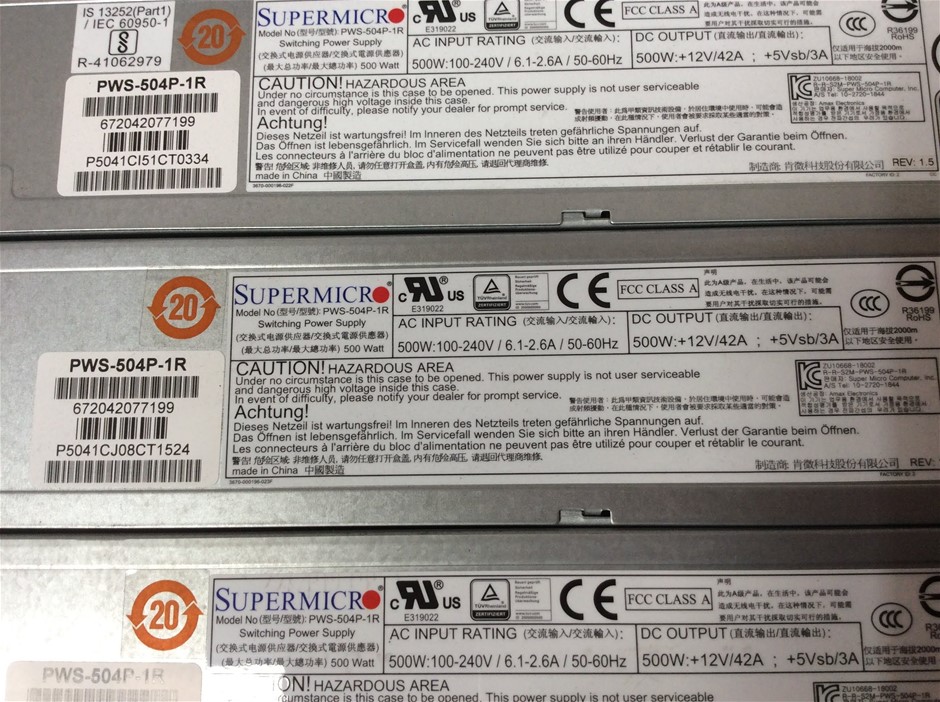 Supermicro PWS-504P-1R 500W Switching Power Supplies (Lot of 10)