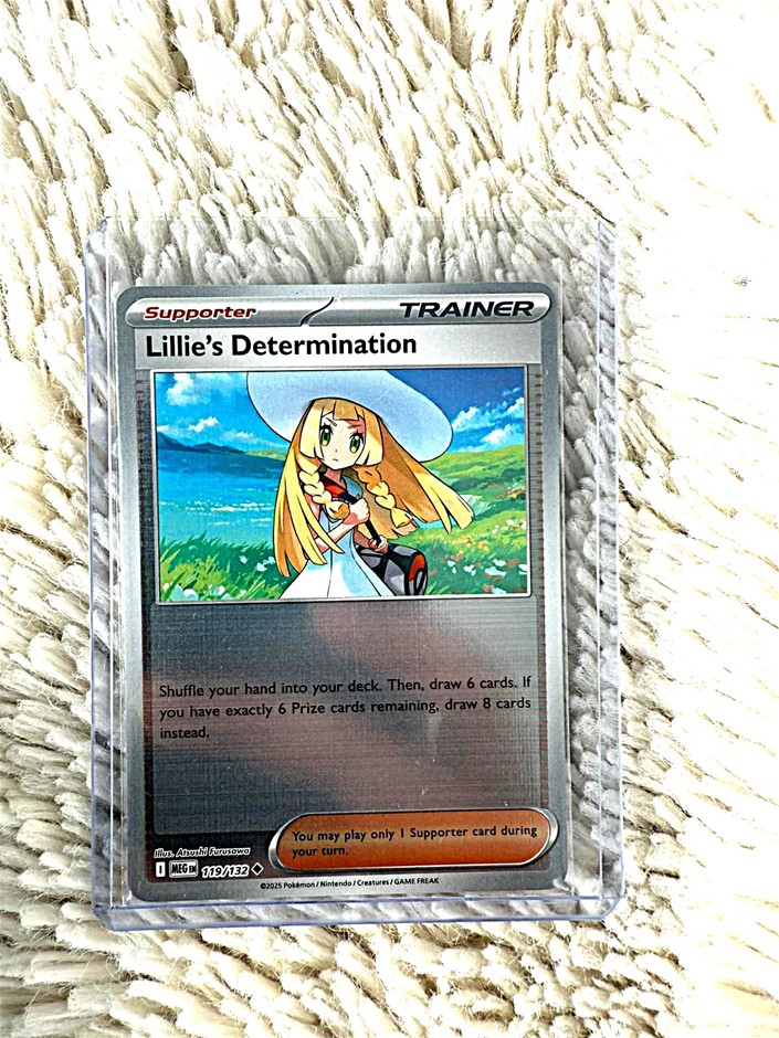 Up for auction is Lillie`s Determination from the Pokémon TCG. This card is ungraded, offered in excellent condition, and will come sleeved and secured in a top loader.