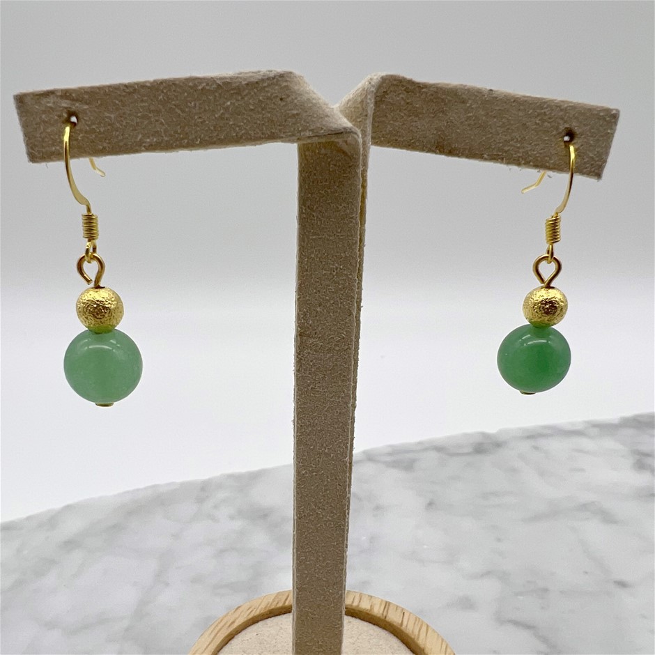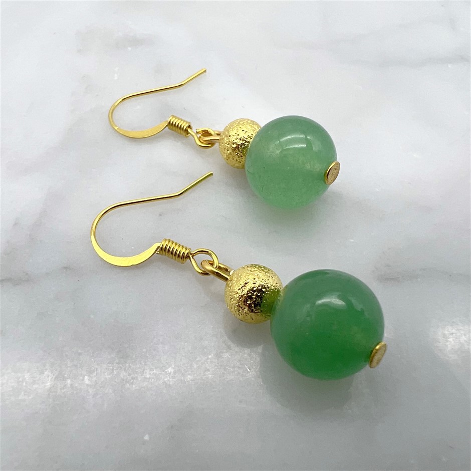 Green Aventurine Gemstone Gold Stardust Drop Earrings