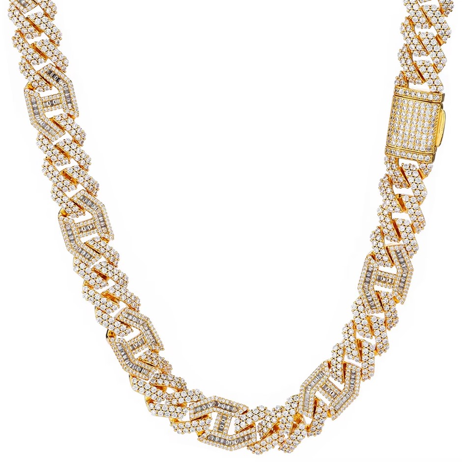 Opulent Galleria - 18K Gold-Filled Cuban Chain Necklace with Simulated Diamonds, 16MM Wide – 60.9cm