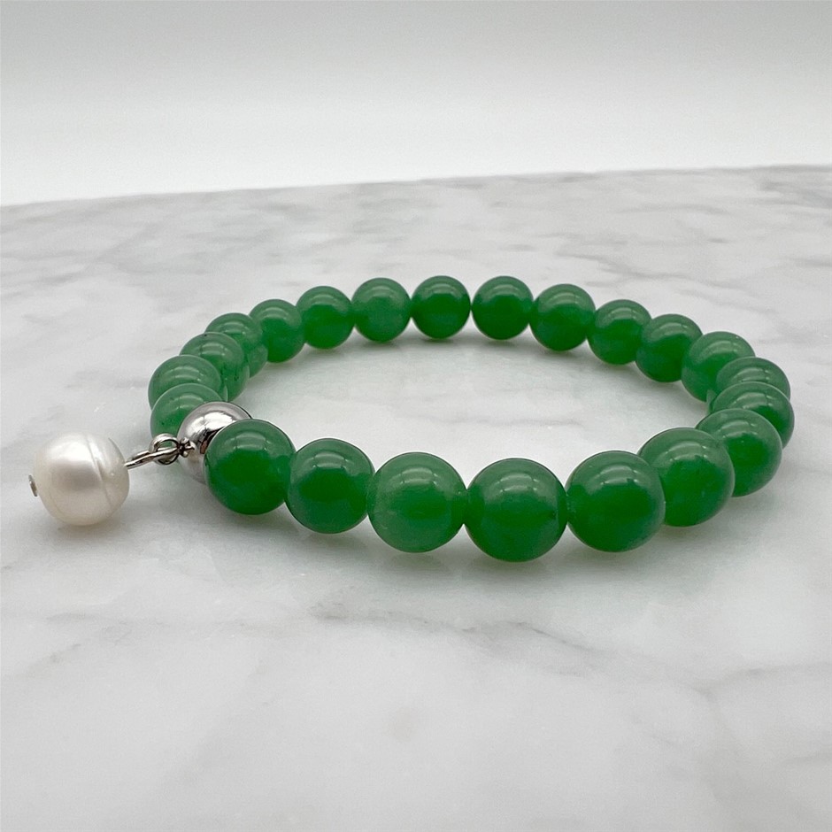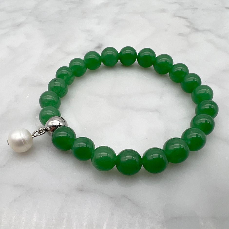Large Freshwater Pearl and Green Aventurine Gemstone Beaded Bracelet.
