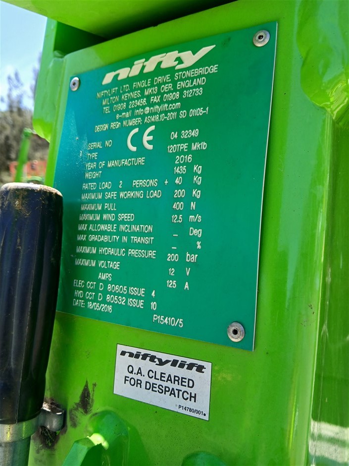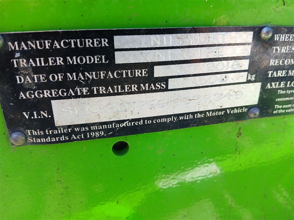 2016 Nifty 120TPE Single Boom Lift Trailer