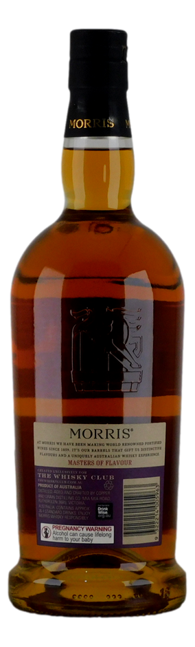 Made from all Australian local ingredients and aged in predominately French oak ex red wine casks at our regional distillery in Rutherglen Victoria, this unique whisky draws incredible flavour from our family’s own prized fortified barrels. Finished in barrels that have held our award-winning 15 year old Morris Cellar Reserve Grand Topaque (Tokay) which displays intense flavours of toffee, mocha, and soft caramel with a generous mid palate.