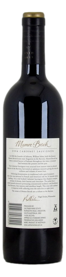 Saltram Mamre Brook Cabernet Sauvignon 2004 (6x 750mL), Barossa Valley.