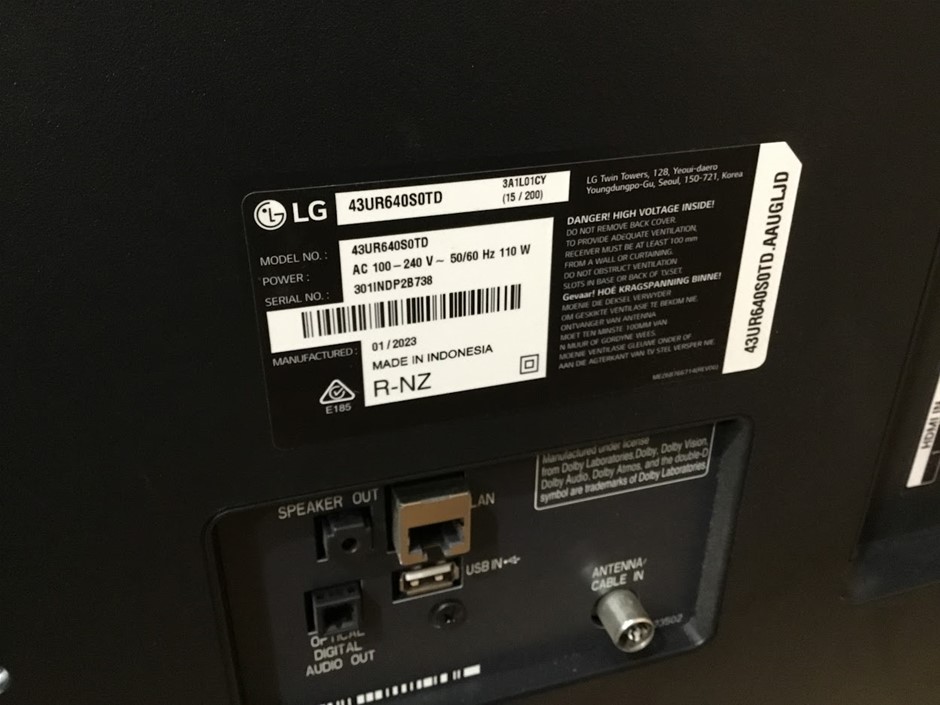 LG 43UR640S0TD 43`` UHD TV Black
