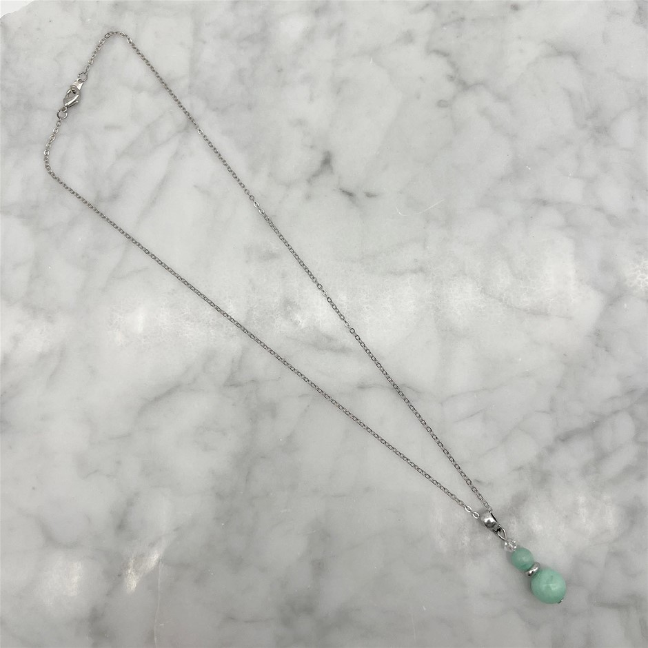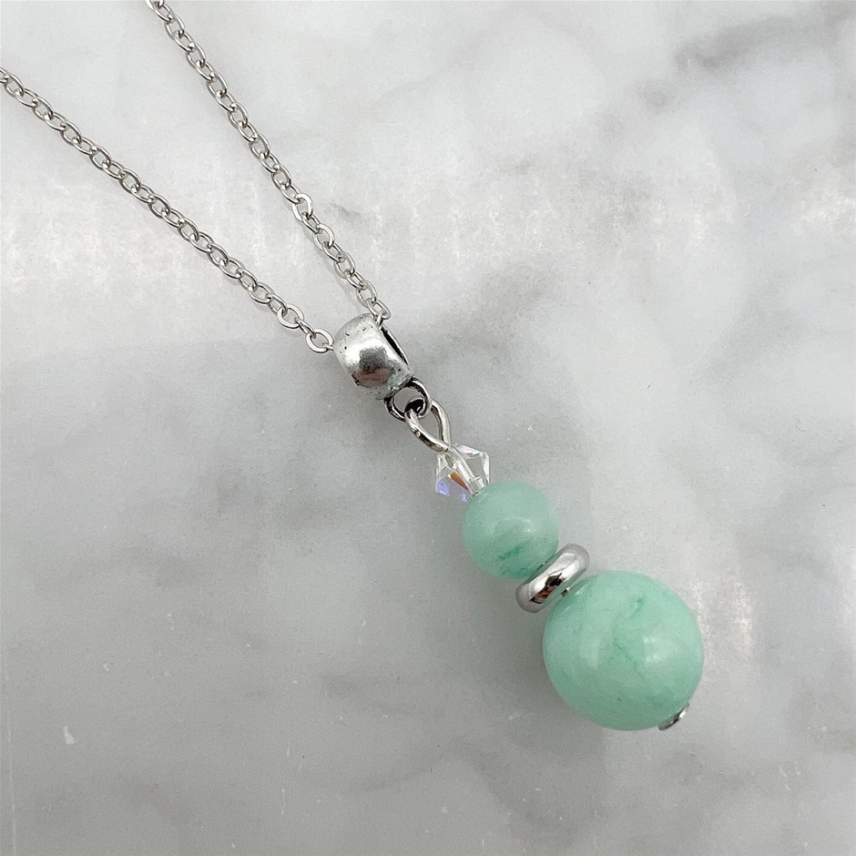 Genuine Aqua Colour Malaysia Jade `Quartz` & Swarovski® Austrian Crystal Platinum Plated Pendant Necklace