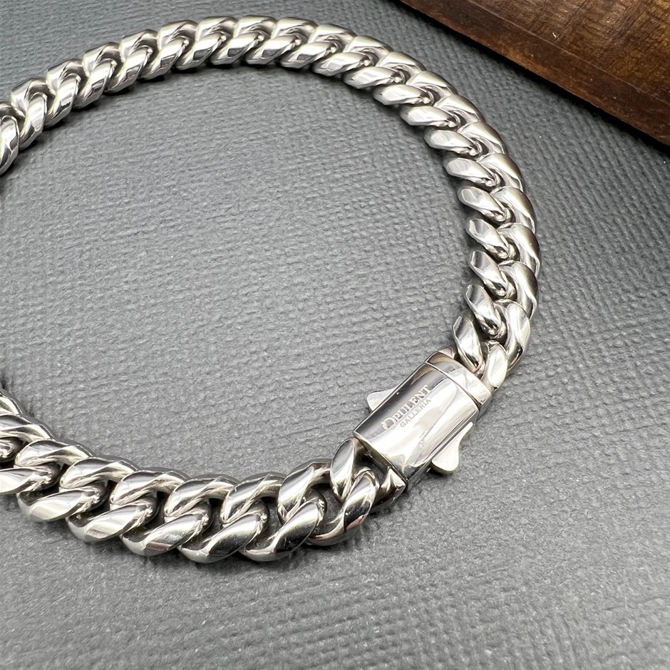 Opulent Galleria - Silver-Filled Cuban Chain Bracelet, 8MM Wide - 20.3cm