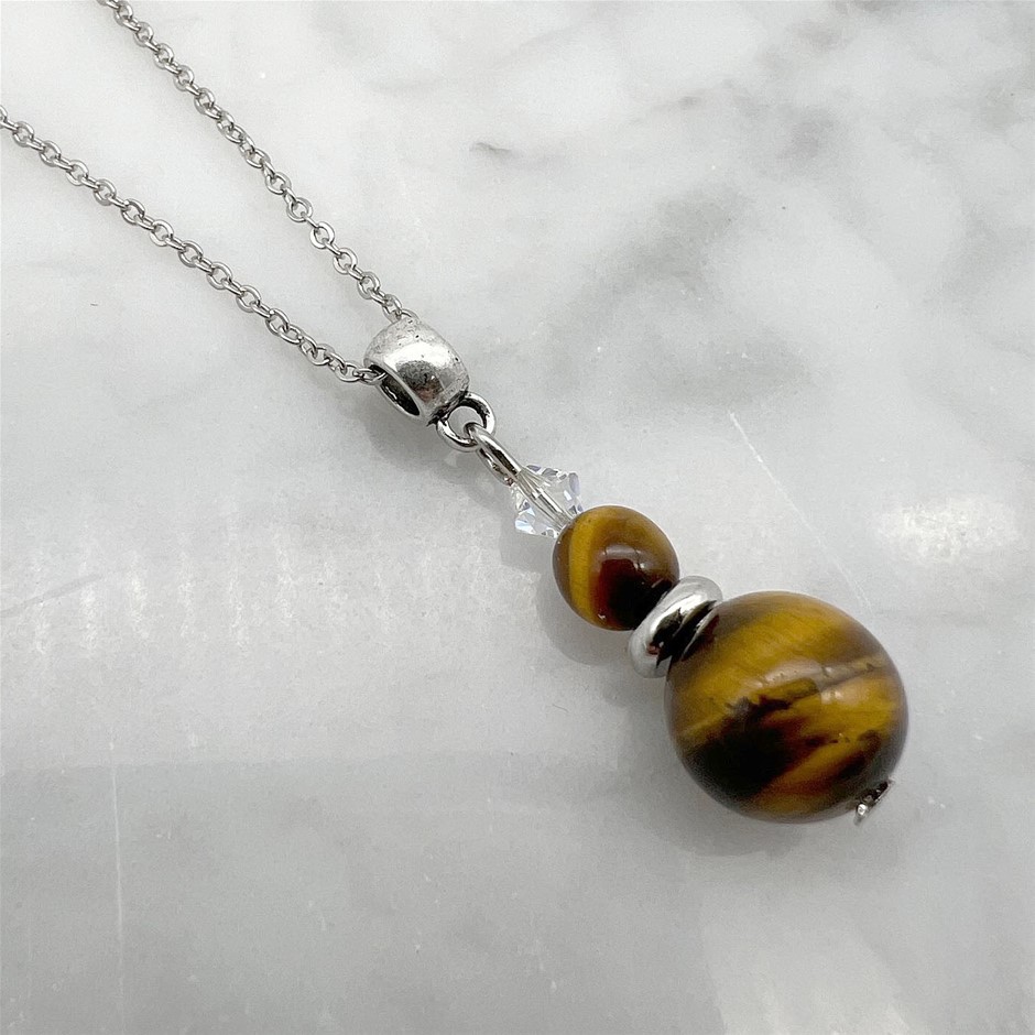 Tiger Eye & Swarovski® Austrian Crystal Platinum Plated Pendant Necklace