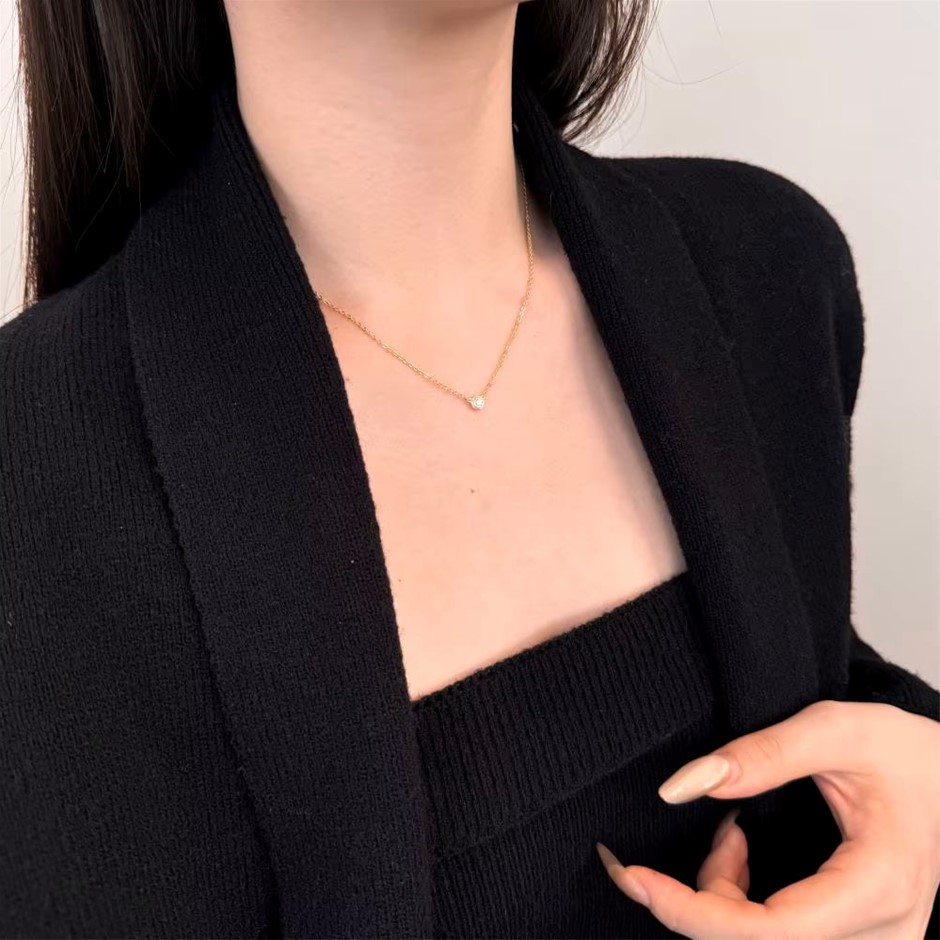 0.10ct Round Cut GRA Certified Moissanite 14KGP Pendant Necklace