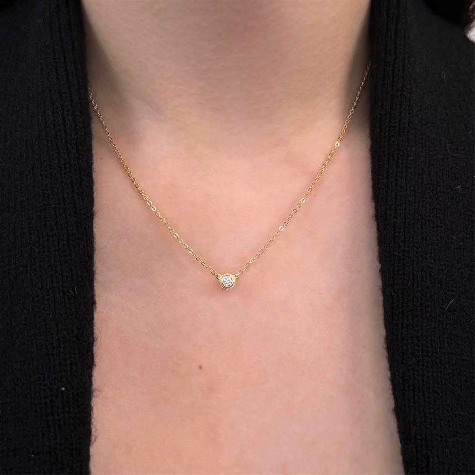 0.10ct Round Cut GRA Certified Moissanite 14KGP Pendant Necklace