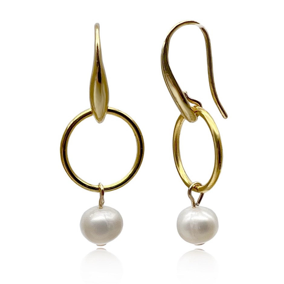 7-8mm Freshwater Pearl & Ring Dangling Drop Earrings