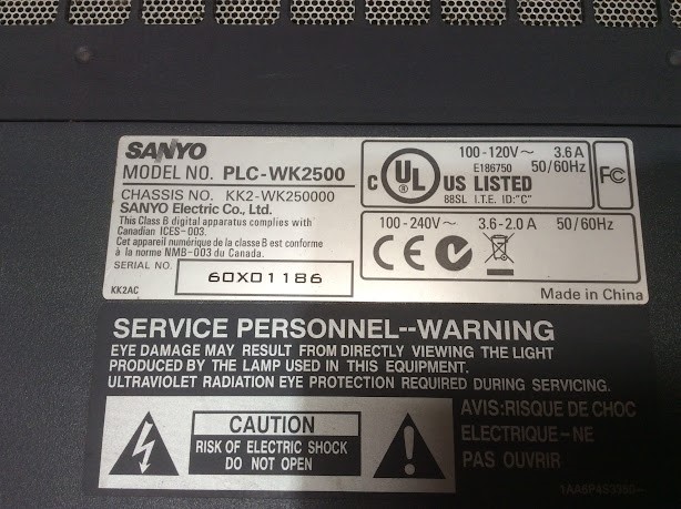 SANYO PLC-WK2500 LCD Projector