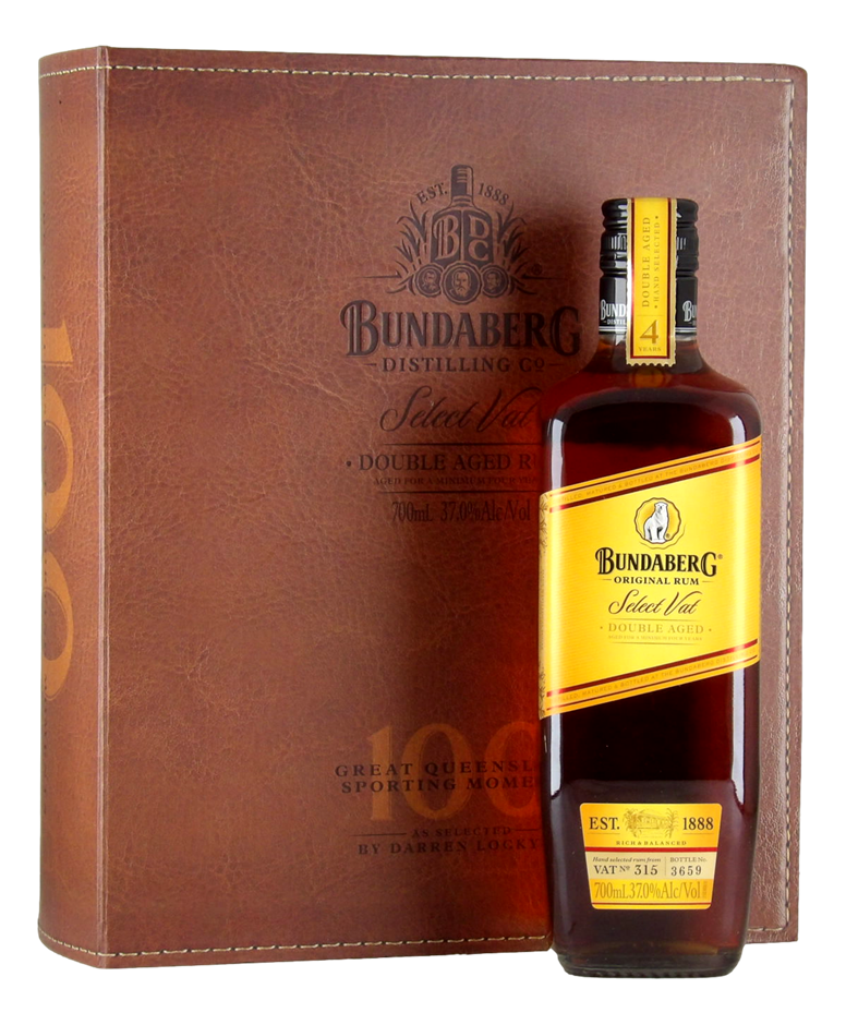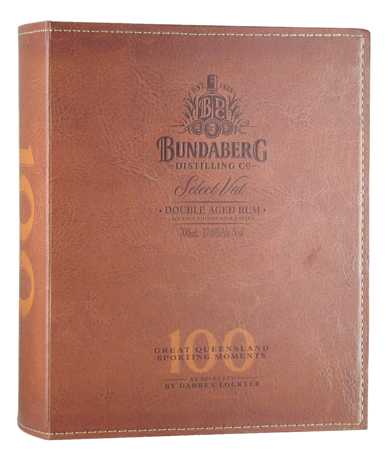 This very unique presentation Gift Set showcases a bottle of Bundaberg`s Select Vat 315, set inside a special book casing an exquisitely bound volume of his ‘100 Great Queensland Sporting Moments’.
