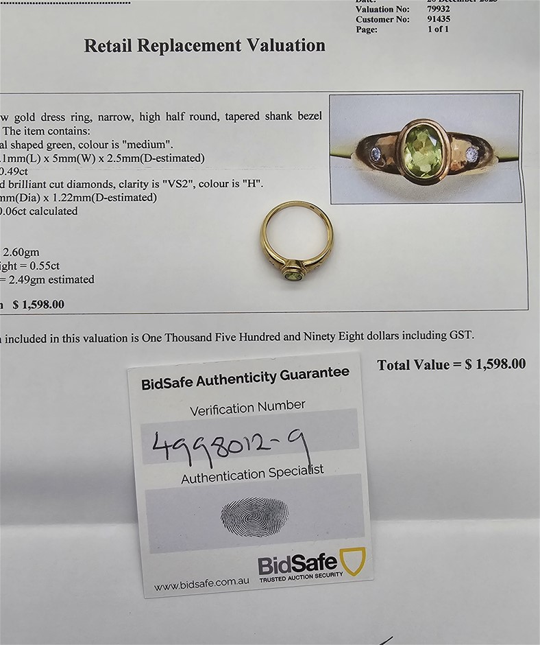 • Central Peridot Weight: .49 Carat