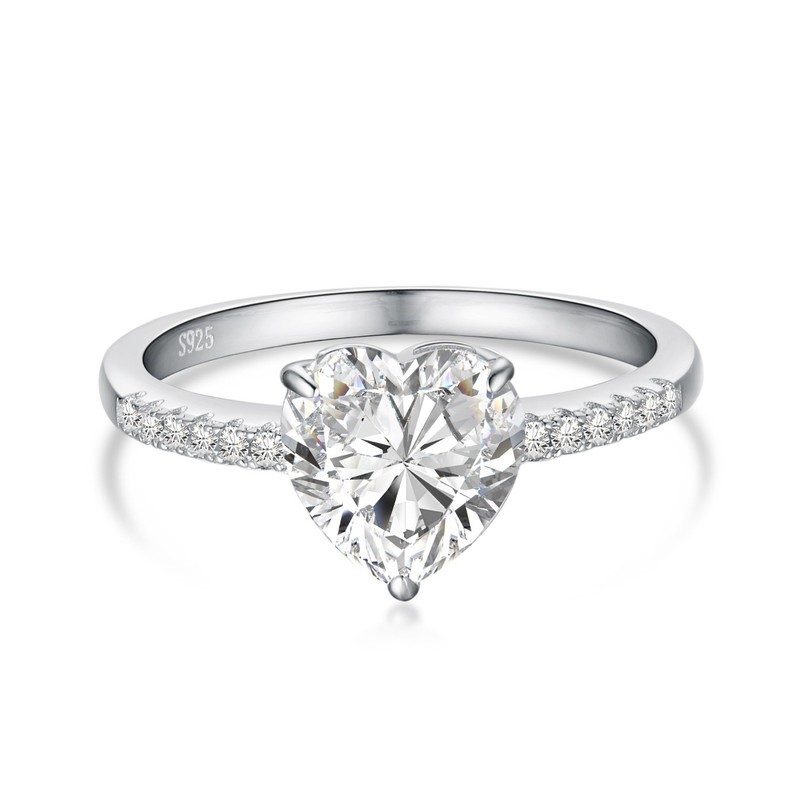 2.0ct Heart Cut GRA Certified Moissanite 925 Sterling Silver Ring - Size 8