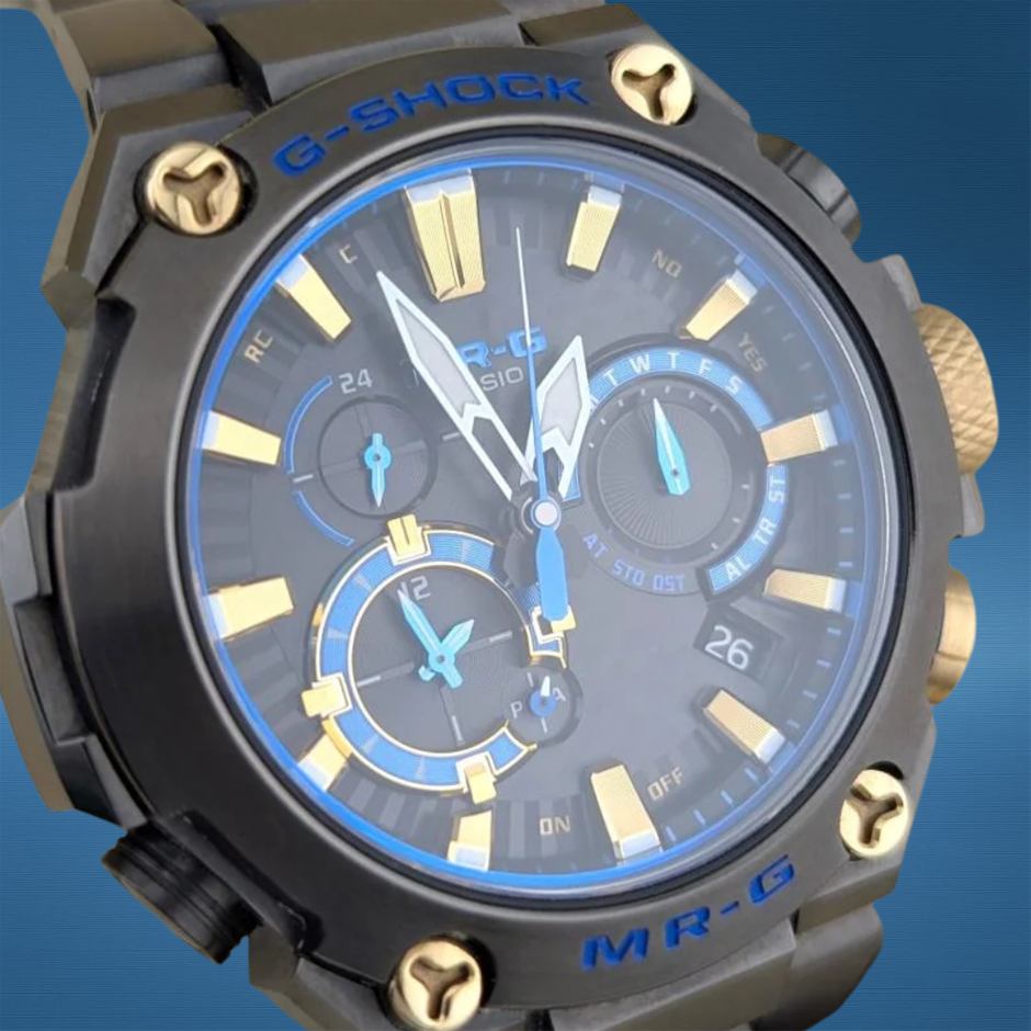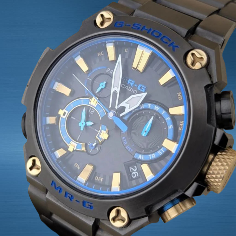 The Casio MRG-B2000B “Kachi-iro” MR-G pairs premium titanium construction with advanced G-Shock toughness and precise solar-atomic timekeeping. Its rich blue “Kachi-iro” accents and luxury build bridge professional functionality with high-end horological style.