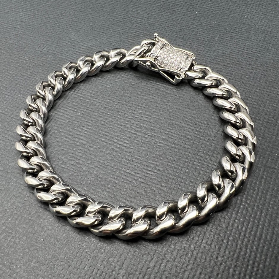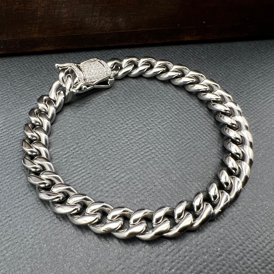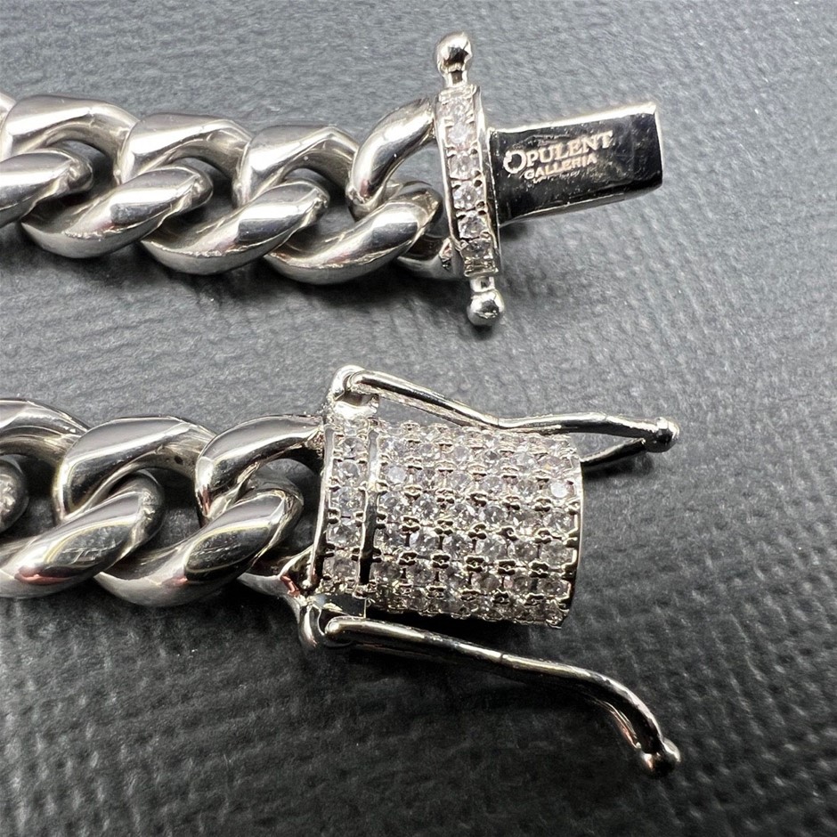 Opulent Galleria - Silver-Filled Cuban Chain Bracelet with Simulated Diamond Clasp, 8MM Wide  – 17.8cm
