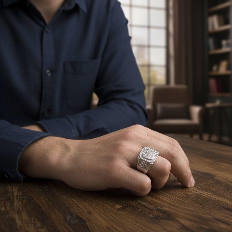 Italy 925 Silver Hip Hop Men`s Ring (Stamps)-10 US
