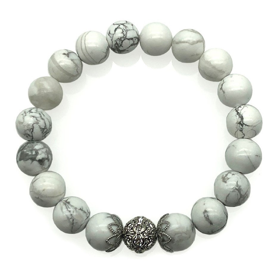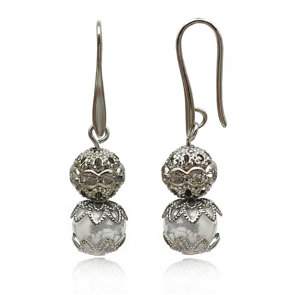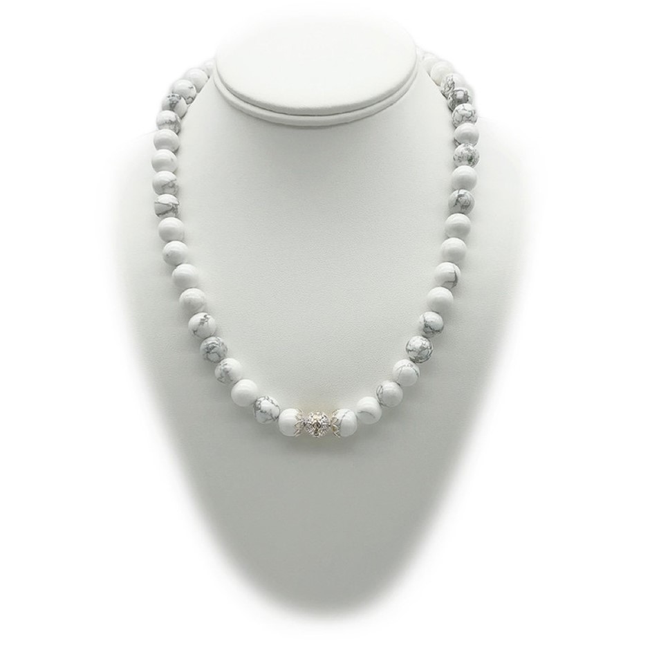 10mm Natural Howlite Persian Love Rhinestone Necklace, Bracelet & Earring Set.
