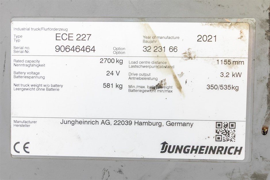 2021 Jungheinrich ECE 227, Ride On Pallet Truck